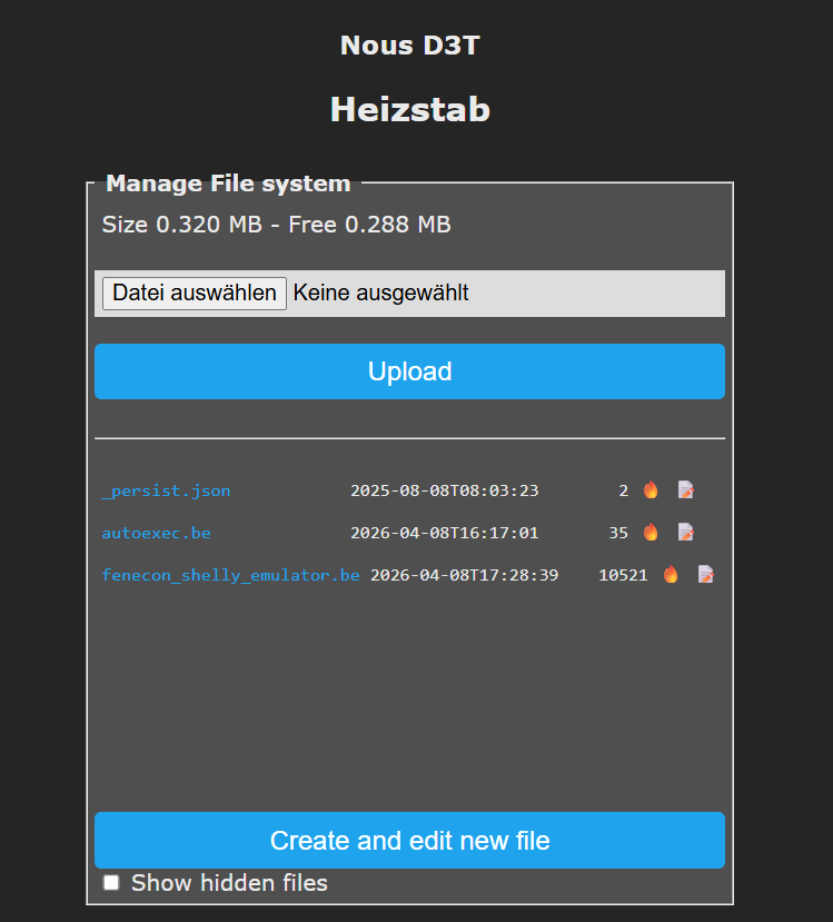 So muss es in Tasmota unter „File Manager“Manage File system“ aussehen, nachdem die beiden Dateien hochgeladen wurden.